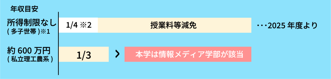 ※2 年収目安約600万以下の場合、給付型奨学金も1/4給付