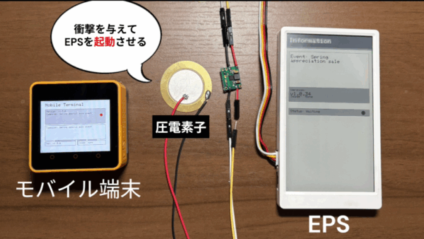 この作品はまだ開発途中です。現在は、圧電素子を複数回叩かないと起動しなかったり、コンテンツもテキストのみの対応になっています。今後は、1回の接触で確実に起動するようにすることと、画像コンテンツにも対応させることを実現して、実際に使える形へと完成度を高めていきたいと考えています。