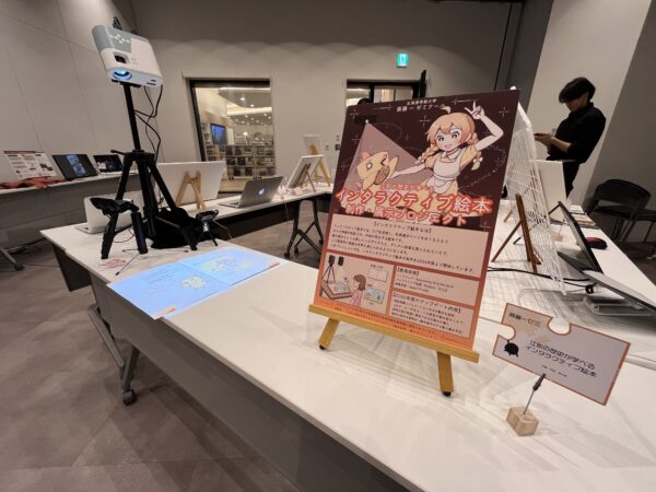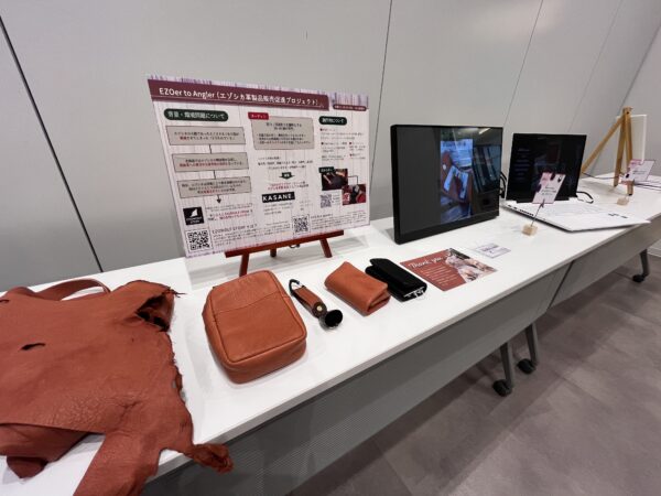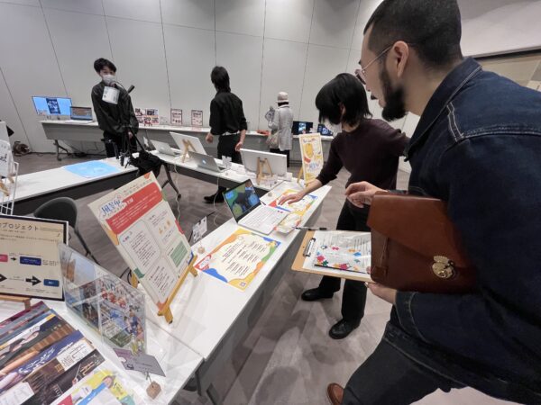 会場では、斎藤一研究室による「江別の歴史が学べるインタラクティブ絵本」や杉澤研究室による「クリスマスにおけるエゾシカ肉消費増加を目的とした企画提案」のほか、両研究室共同で行ったプロジェクト・研究など計15点の展示が行われました。